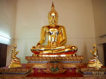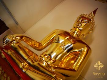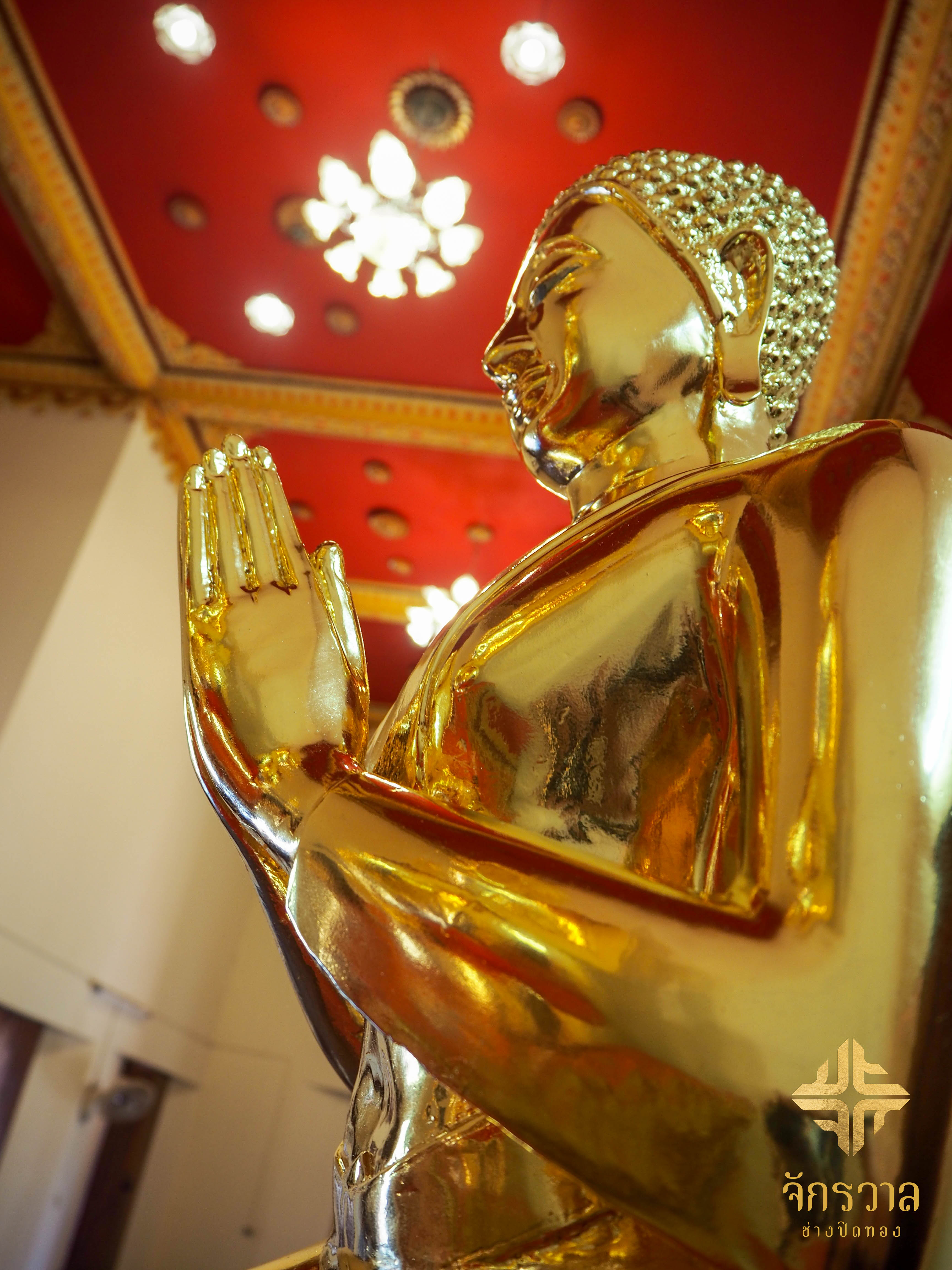 ทีมงานช่างปิดทอง ได้รับการติดต่อจากคณะกรรมการวัด ที่เห็นผลงานของเราจากทางเว็บไซต์ ให้เดินทางมาบูรณะปิดทองพระพุทธรูป ซึ่งเป็นพระประธานในอุโบสถ ขนาดหน้าตัก กว้าง ๑๔ นิ้ว เรียกได้ว่าตลอดระยะเวลาการทำงานในครั้งนี้ ทีมงานช่างปิดทองได้รับความสนใจจากผู้คนเป็นอย่างมากทีเดียวครับ เนื่องจากวัดนี้เป็นที่มีญาติโยมมาทำบุญกันค่อนข้างมาก ทุกวันที่ทำงานจะมีคนเข้ามาเยี่ยมชม และสอบถามถึงขั้นตอนในการทำงานเป็นประจำ นอกจากนี้ยังมีรายการโทรทัศน์ที่ให้ความสนใจในการสร้างผลงานของช่างปิดทองอีกด้วย เราจึงถือโอกาสที่กำลังปิดทองพระพุทธรูปองค์นี้ ให้ทีมงานมาเก็บภาพเบื้องหลัง รวมถึงสัมภาษณ์ท่านเจ้าอาวาส และญาติโยม สิ่งที่ทำให้ผมชื่นใจเป็นอย่างมาก เพราะทุกคนพูดเป็นเสียงเดียวกันว่า “ชื่นชอบในผลงานชิ้นนี้”